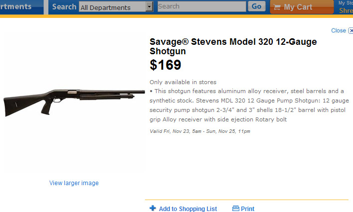 Walmart has posted their Black Friday sale and they included this Savage 12-Gauge at only 169 dollars. Not all stores will carry this. (I checked.)